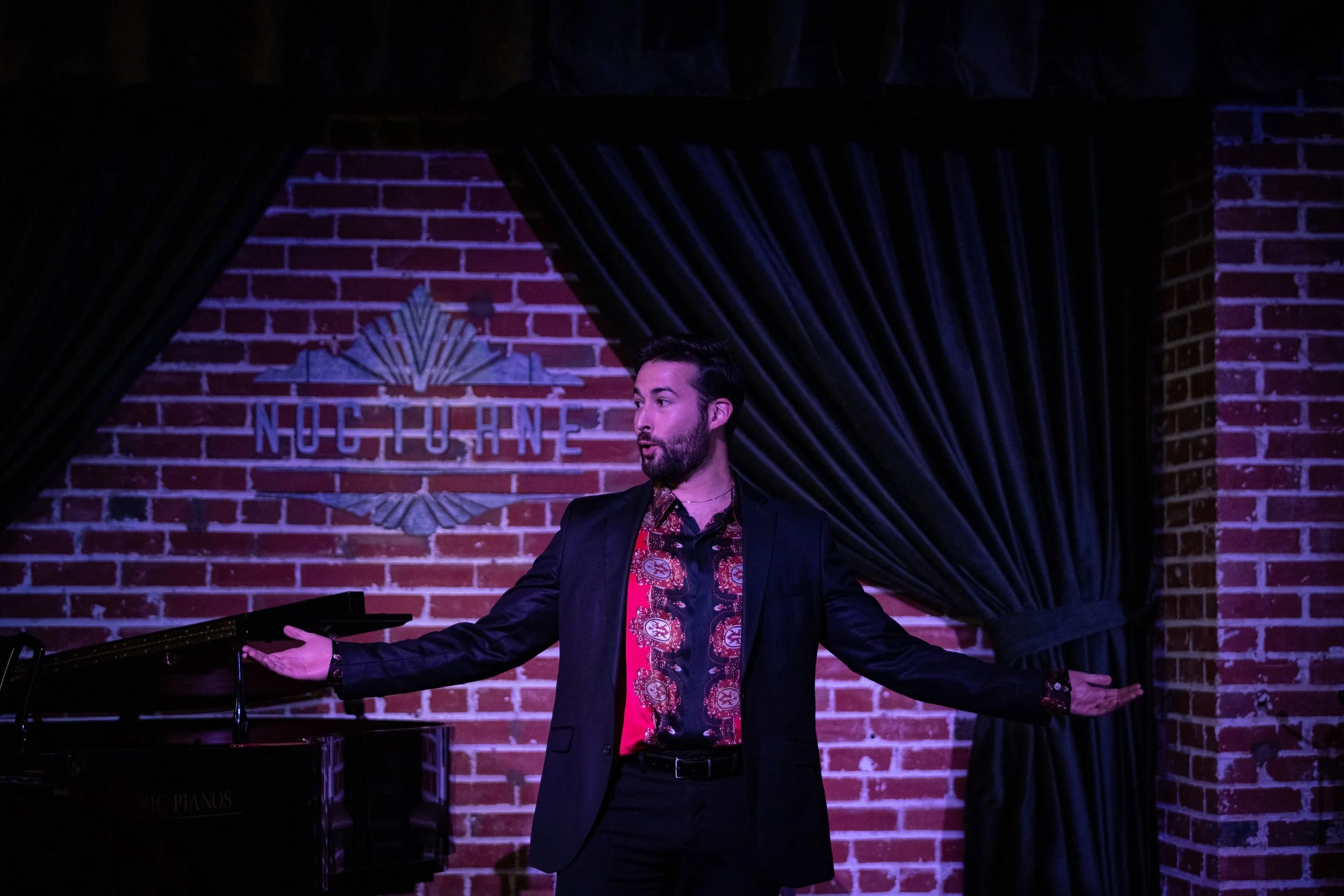 Dante Mireles at Cabaret night at Nocturne jazz & supper bar in RINO, Denver Sip & Sing Opera Colorado.